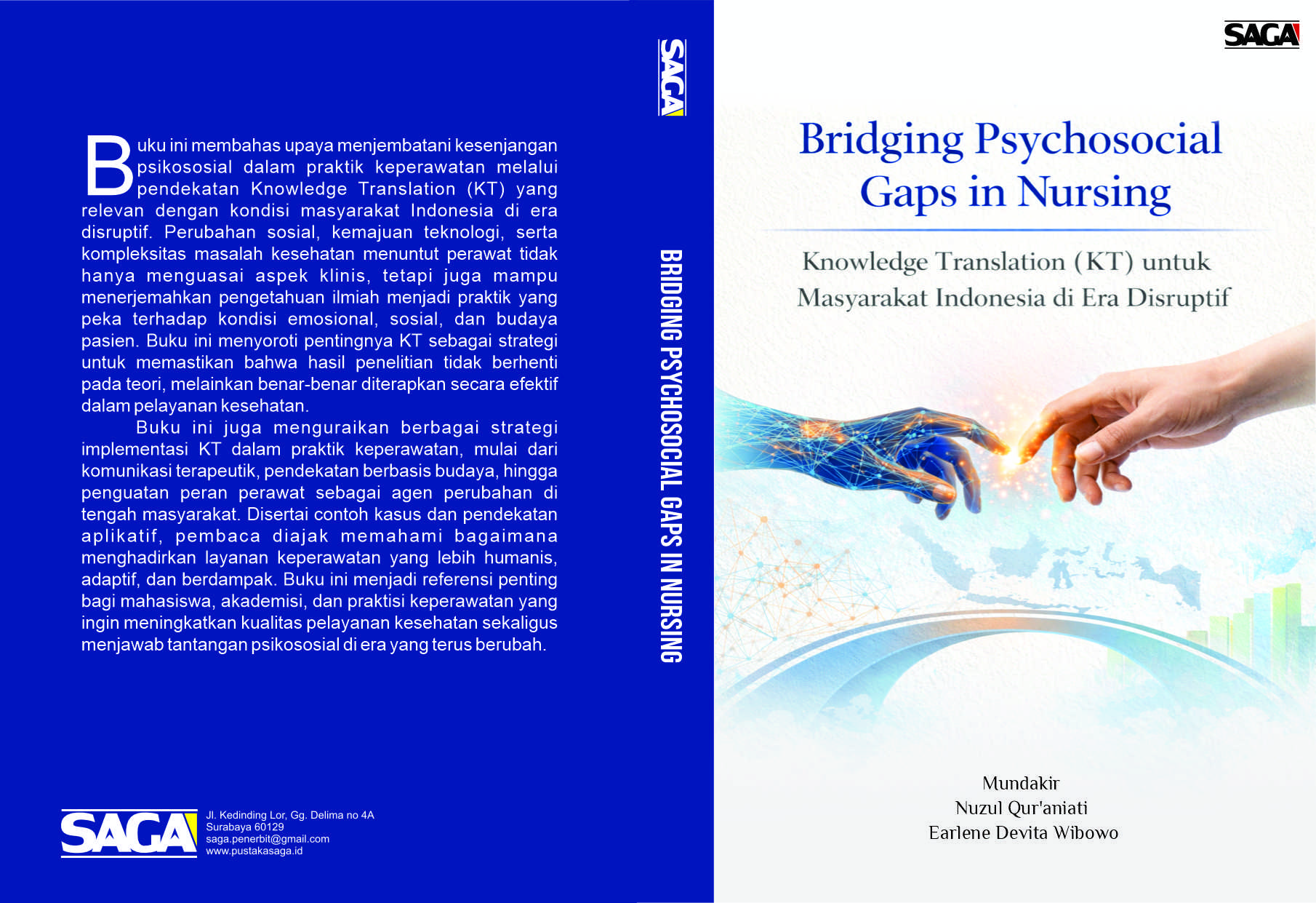 Buku ini membahas upaya menjembatani kesenjangan psikososial dalam praktik keperawatan melalui pendekatan Knowledge Translation (KT) yang relevan dengan kondisi masyarakat Indonesia di era disruptif. Perubahan sosial, kemajuan teknologi, serta kompleksitas masalah kesehatan menuntut perawat tidak hanya menguasai aspek klinis, tetapi juga mampu menerjemahkan pengetahuan ilmiah menjadi praktik yang peka terhadap kondisi emosional, sosial, dan budaya pasien. Buku ini menyoroti pentingnya KT sebagai strategi untuk memastikan bahwa hasil penelitian tidak berhenti pada teori, melainkan benar-benar diterapkan secara efektif dalam pelayanan kesehatan.