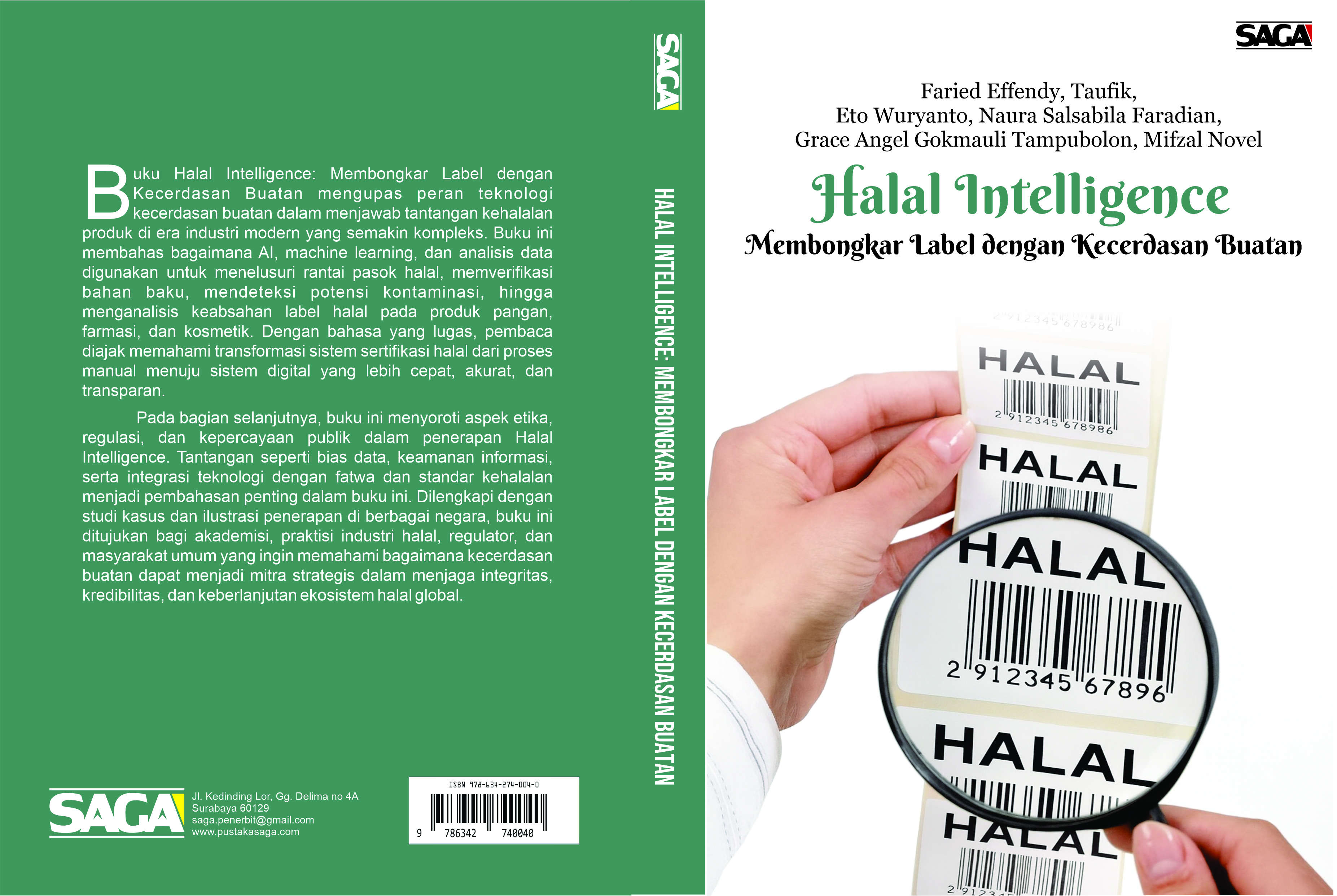 Buku Halal Intelligence: Membongkar Label dengan Kecerdasan Buatan mengupas peran teknologi kecerdasan buatan dalam menjawab tantangan kehalalan produk di era industri modern yang semakin kompleks. Buku ini membahas bagaimana AI, machine learning, dan analisis data digunakan untuk menelusuri rantai pasok halal, memverifikasi bahan baku, mendeteksi potensi kontaminasi, hingga menganalisis keabsahan label halal pada produk pangan, farmasi, dan kosmetik. Dengan bahasa yang lugas, pembaca diajak memahami transformasi sistem sertifikasi halal dari proses manual menuju sistem digital yang lebih cepat, akurat, dan transparan.