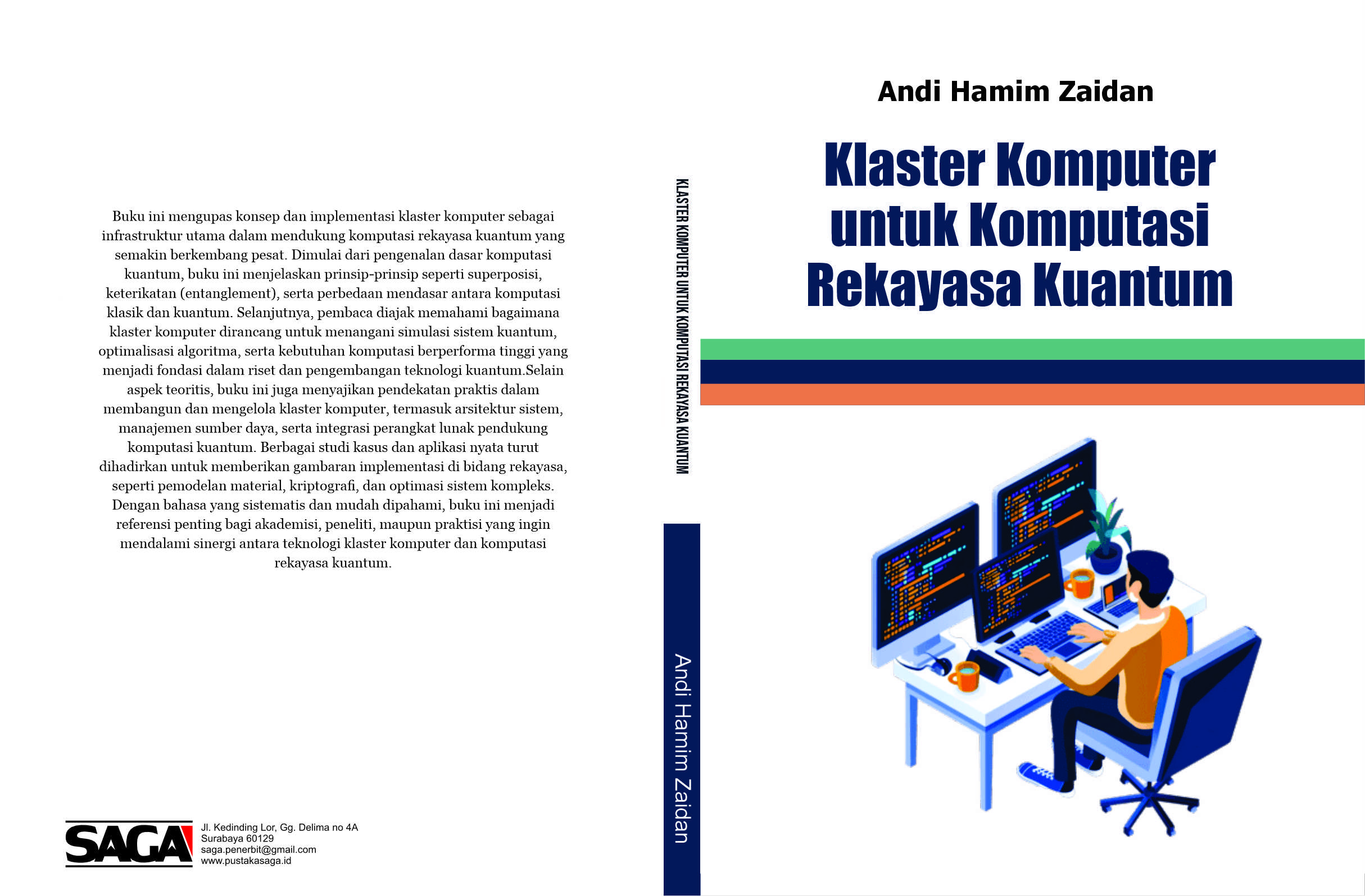 Buku ini mengupas konsep dan implementasi klaster komputer sebagai infrastruktur utama dalam mendukung komputasi rekayasa kuantum yang semakin berkembang pesat. Dimulai dari pengenalan dasar komputasi kuantum, buku ini menjelaskan prinsip-prinsip seperti superposisi, keterikatan (entanglement), serta perbedaan mendasar antara komputasi klasik dan kuantum. Selanjutnya, pembaca diajak memahami bagaimana klaster komputer dirancang untuk menangani simulasi sistem kuantum, optimalisasi algoritma, serta kebutuhan komputasi berperforma tinggi yang menjadi fondasi dalam riset dan pengembangan teknologi kuantum.Selain aspek teoritis, buku ini juga menyajikan pendekatan praktis dalam membangun dan mengelola klaster komputer, termasuk arsitektur sistem, manajemen sumber daya, serta integrasi perangkat lunak pendukung komputasi kuantum. Berbagai studi kasus dan aplikasi nyata turut dihadirkan untuk memberikan gambaran implementasi di bidang rekayasa, seperti pemodelan material, kriptografi, dan optimasi sistem kompleks. Dengan bahasa yang sistematis dan mudah dipahami, buku ini menjadi referensi penting bagi akademisi, peneliti, maupun praktisi yang ingin mendalami sinergi antara teknologi klaster komputer dan komputasi rekayasa kuantum.