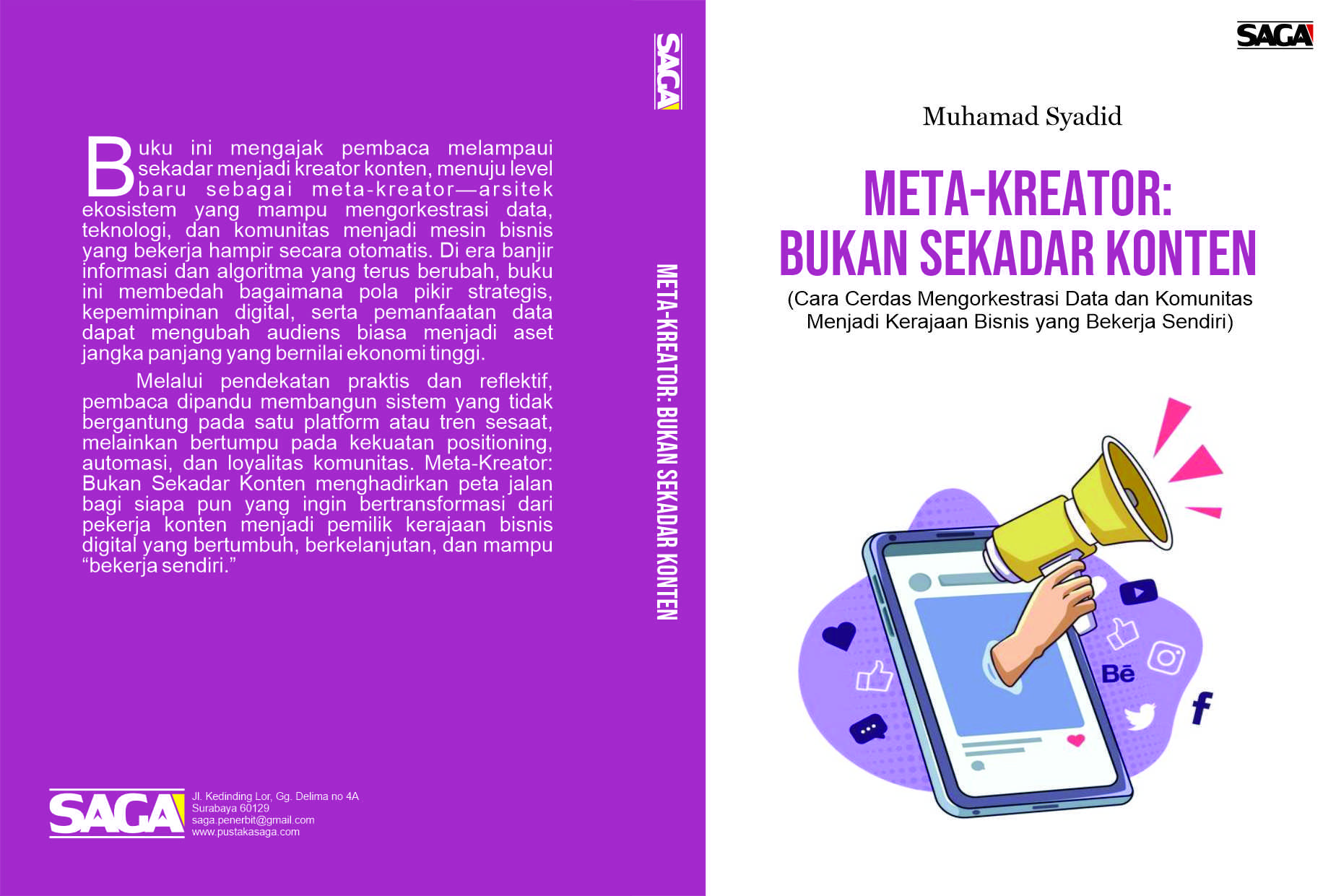 Buku ini mengajak pembaca melampaui sekadar menjadi kreator konten, menuju level baru sebagai meta-kreator—arsitek ekosistem yang mampu mengorkestrasi data, teknologi, dan komunitas menjadi mesin bisnis yang bekerja hampir secara otomatis. Di era banjir informasi dan algoritma yang terus berubah, buku ini membedah bagaimana pola pikir strategis, kepemimpinan digital, serta pemanfaatan data dapat mengubah audiens biasa menjadi aset jangka panjang yang bernilai ekonomi tinggi.