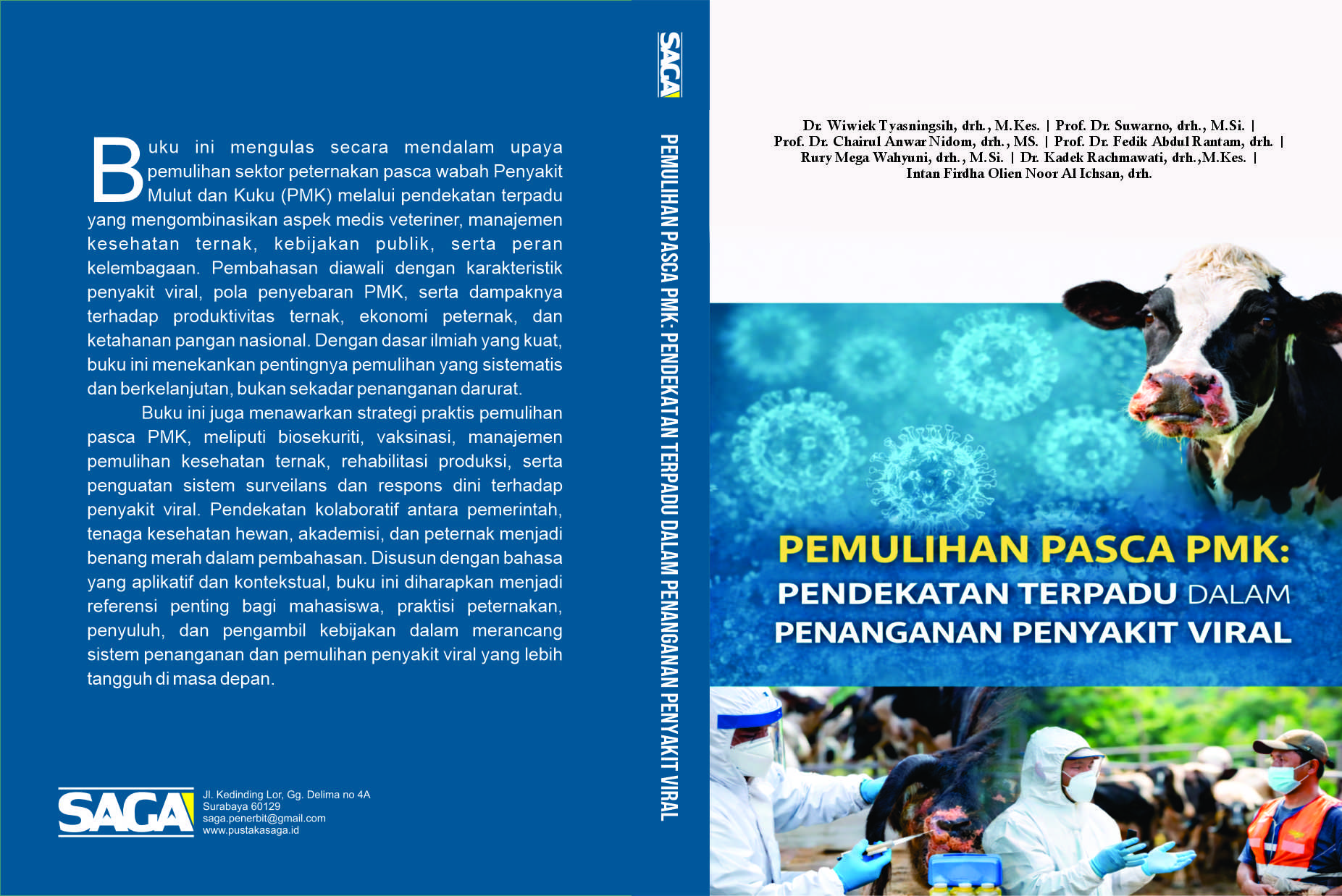 Buku ini juga menawarkan strategi praktis pemulihan pasca PMK, meliputi biosekuriti, vaksinasi, manajemen pemulihan kesehatan ternak, rehabilitasi produksi, serta penguatan sistem surveilans dan respons dini terhadap penyakit viral. Pendekatan kolaboratif antara pemerintah, tenaga kesehatan hewan, akademisi, dan peternak menjadi benang merah dalam pembahasan. Disusun dengan bahasa yang aplikatif dan kontekstual, buku ini diharapkan menjadi referensi penting bagi mahasiswa, praktisi peternakan, penyuluh, dan pengambil kebijakan dalam merancang sistem penanganan dan pemulihan penyakit viral yang lebih tangguh di masa depan.