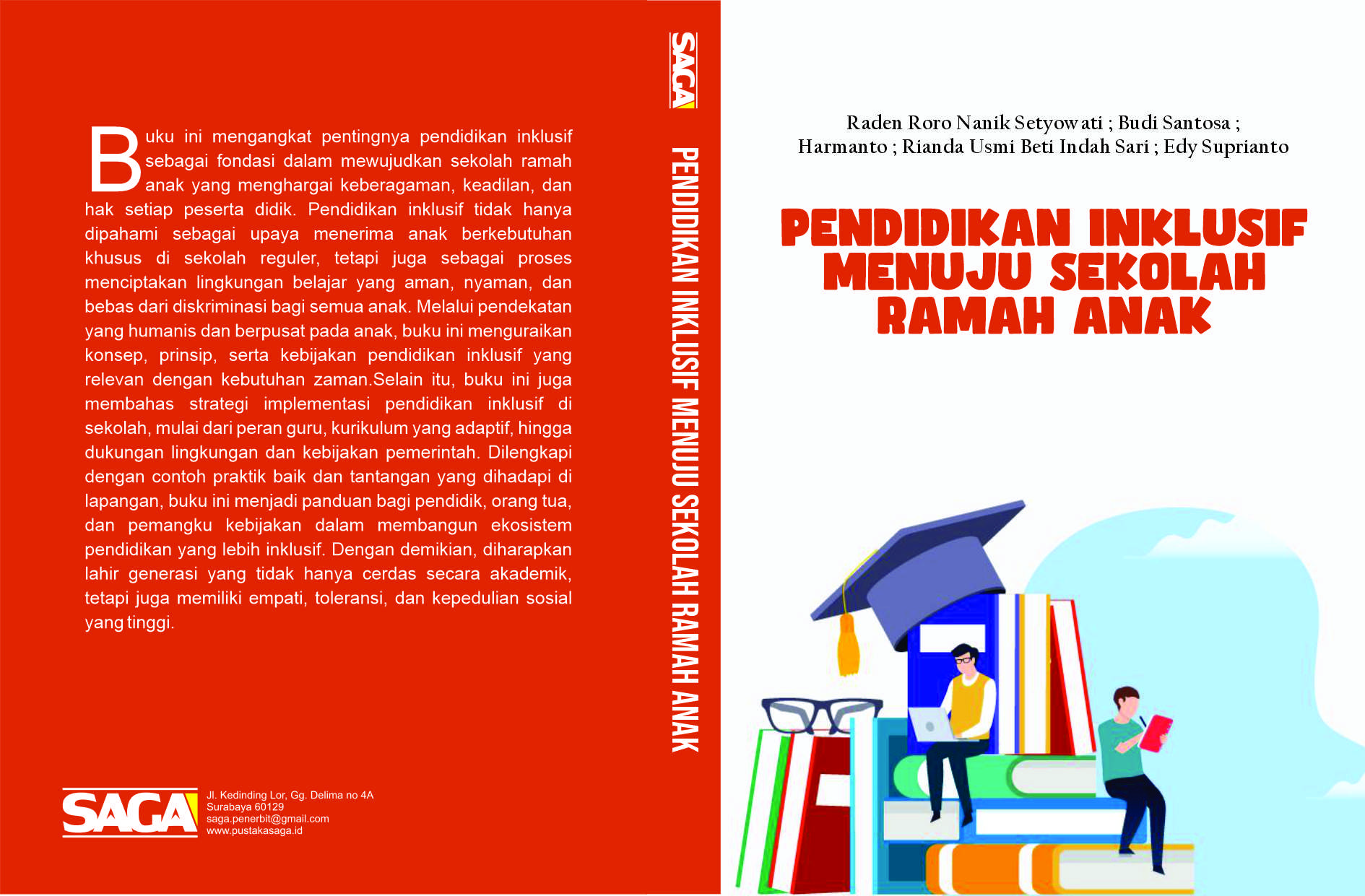 Buku ini mengangkat pentingnya pendidikan inklusif sebagai fondasi dalam mewujudkan sekolah ramah anak yang menghargai keberagaman, keadilan, dan hak setiap peserta didik. Pendidikan inklusif tidak hanya dipahami sebagai upaya menerima anak berkebutuhan khusus di sekolah reguler, tetapi juga sebagai proses menciptakan lingkungan belajar yang aman, nyaman, dan bebas dari diskriminasi bagi semua anak. Melalui pendekatan yang humanis dan berpusat pada anak, buku ini menguraikan konsep, prinsip, serta kebijakan pendidikan inklusif yang relevan dengan kebutuhan zaman.Selain itu, buku ini juga membahas strategi implementasi pendidikan inklusif di sekolah, mulai dari peran guru, kurikulum yang adaptif, hingga dukungan lingkungan dan kebijakan pemerintah. Dilengkapi dengan contoh praktik baik dan tantangan yang dihadapi di lapangan, buku ini menjadi panduan bagi pendidik, orang tua, dan pemangku kebijakan dalam membangun ekosistem pendidikan yang lebih inklusif. Dengan demikian, diharapkan lahir generasi yang tidak hanya cerdas secara akademik, tetapi juga memiliki empati, toleransi, dan kepedulian sosial yang tinggi.